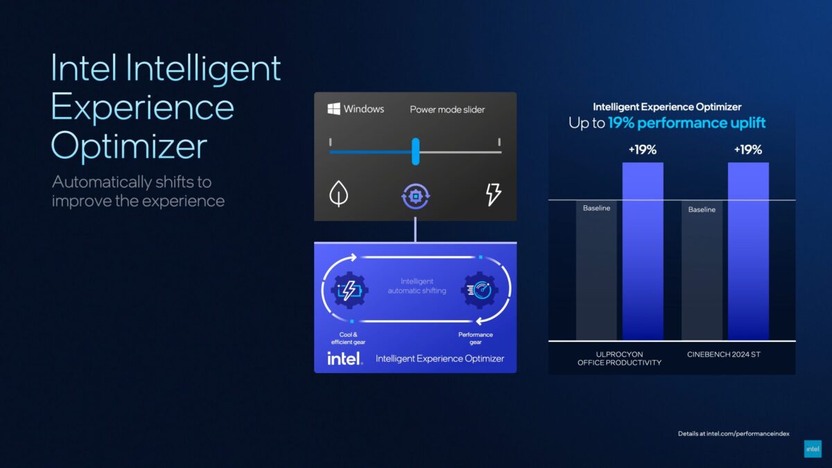 画像はIntel公式動画より引用従来のWindowsのパワースライダー(パフォーマンス優先/バランスなど)は静的で、手動で切り替える必要がありました。そこで、電力管理技術のIEOの登場です。