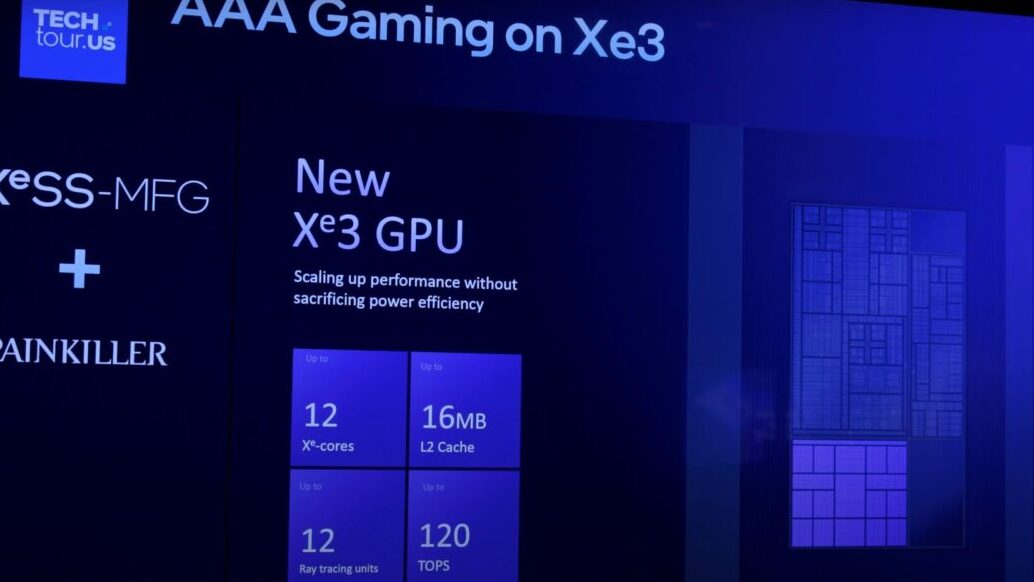 - 統合GPUの性能革命:Xe3アーキテクチャによるコア数50%増強と、AIフレーム生成技術「MFG」によるフレームレート3〜4倍の実現。